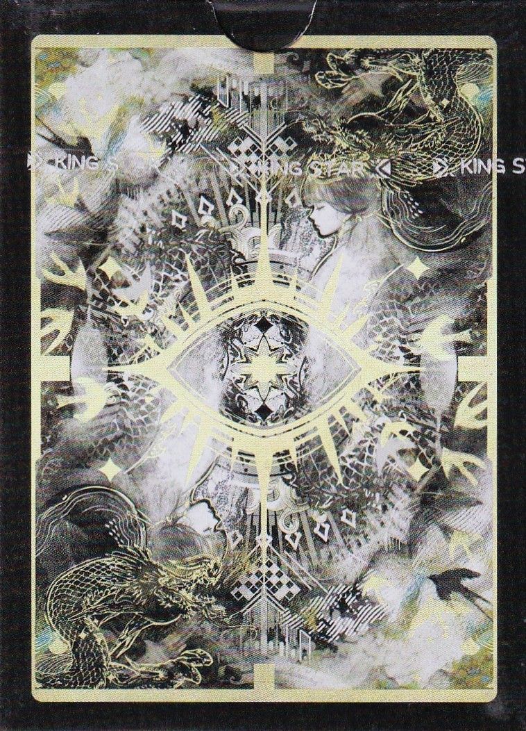 Poker size,Bordered,Cold foil,Gilded,Seal (numbered),Foiled tuck,Slipcase,Inner tuck printingStock & Finish