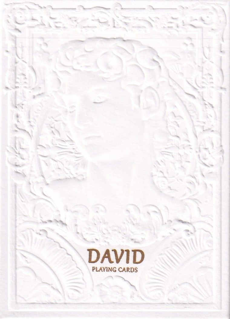 When it comes to sculpture, pure white marble is often the first thing that comes to mind. Inspired by the art of sculpture, this deck showcases clean and exquisite lines, as well as the interplay of light and shadow. Paying homage to iconic sculptures, including Michelangelo's renowned David, it represents one of the most celebrated masterpieces in Western art history. To create this tuck case, intricate and elegant embossing techniques were employed. Both thematically and visually, it instantly evokes the world of sculpture. European-style vines and textures adorn the entire composition, culminating in the centerpiece of the tuck case, the statue itself. In order to achieve a visually striking embossed effect, special embossing plates with a height 2mm higher than conventional ones were used. This results in a pronounced and distinctive embossed effect on the finished product. The choice of cotton-based paper provides the tuck case with a tactile roughness reminiscent of marble. The cards maintain the theme of pure elegance, with unified colors across all suits. During the printing process, eye-catching premium PANTONE silver ink was employed, elevating the deck's luxury and further accentuating the theme. The court cards depict various famous sculptures, each one carefully selected for its artistic beauty and significance. From the intricate details of Michelangelo's David to the timeless elegance of Venus by Milo, these cards celebrate the masterpieces that have captivated art enthusiasts for centuries. Immerse yourself in the world of sculpture with this deck, where pure elegance meets the artistry of renowned sculptures.