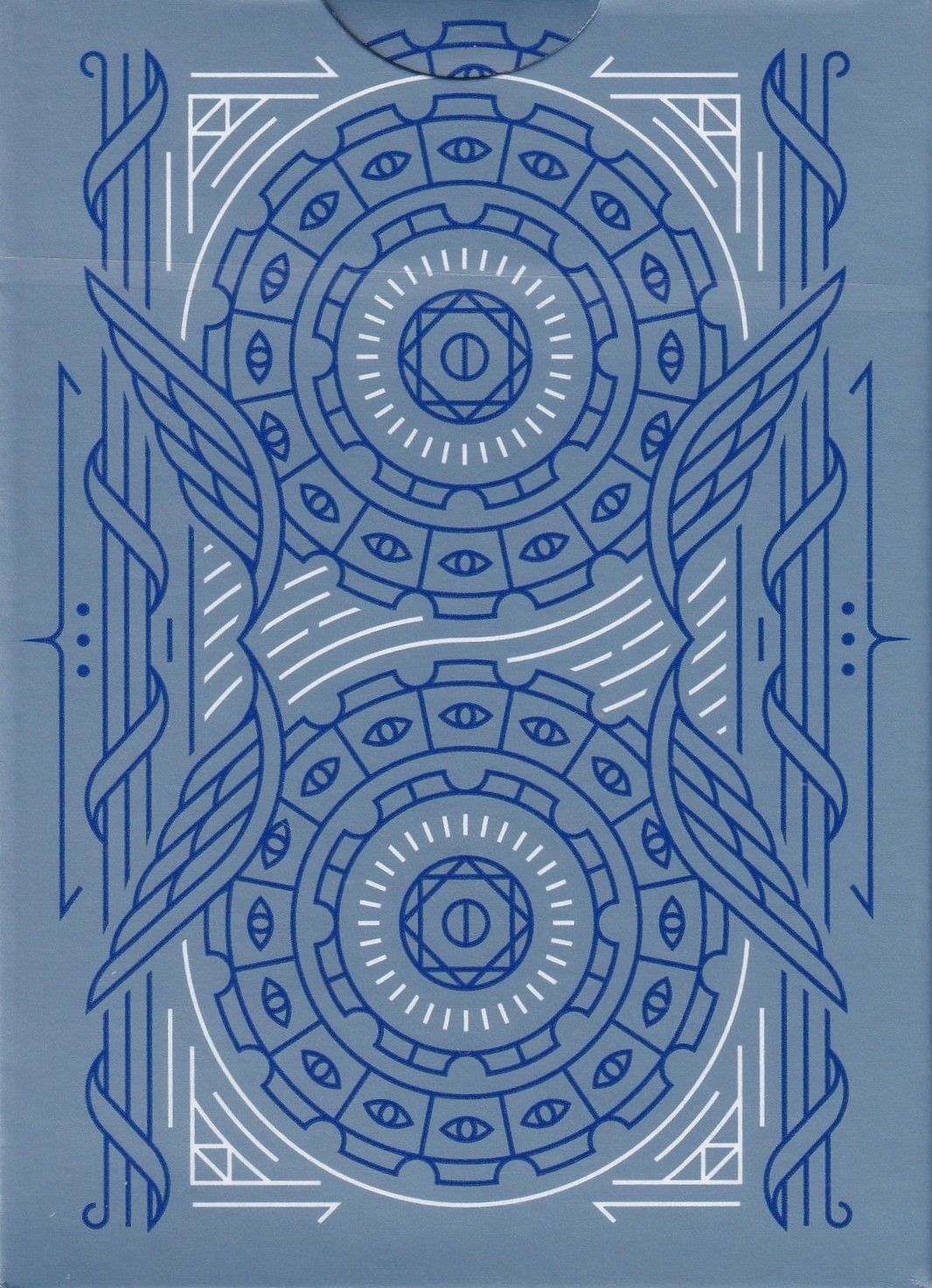 Celestial is inspired by angels and heavenly choirs. Noesis features two metallic inks on the cards, and a tuck box, printed by USPCC, with metallic ink.