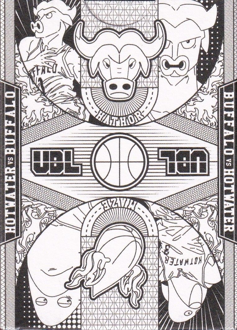 Featuring a monochrome tuck box and vibrant illustrations of the titular characters and team logos from the "I'm Back!" arc. Illustrations are rendered in the style of the manga in black and white, all overlaid on a stylized basketball court. Add the dynamic element of a stylized sports manga to your collection! Within this edition, you will find 54 fully customized playing cards, crafted to embody the spirit of the UBL universe.