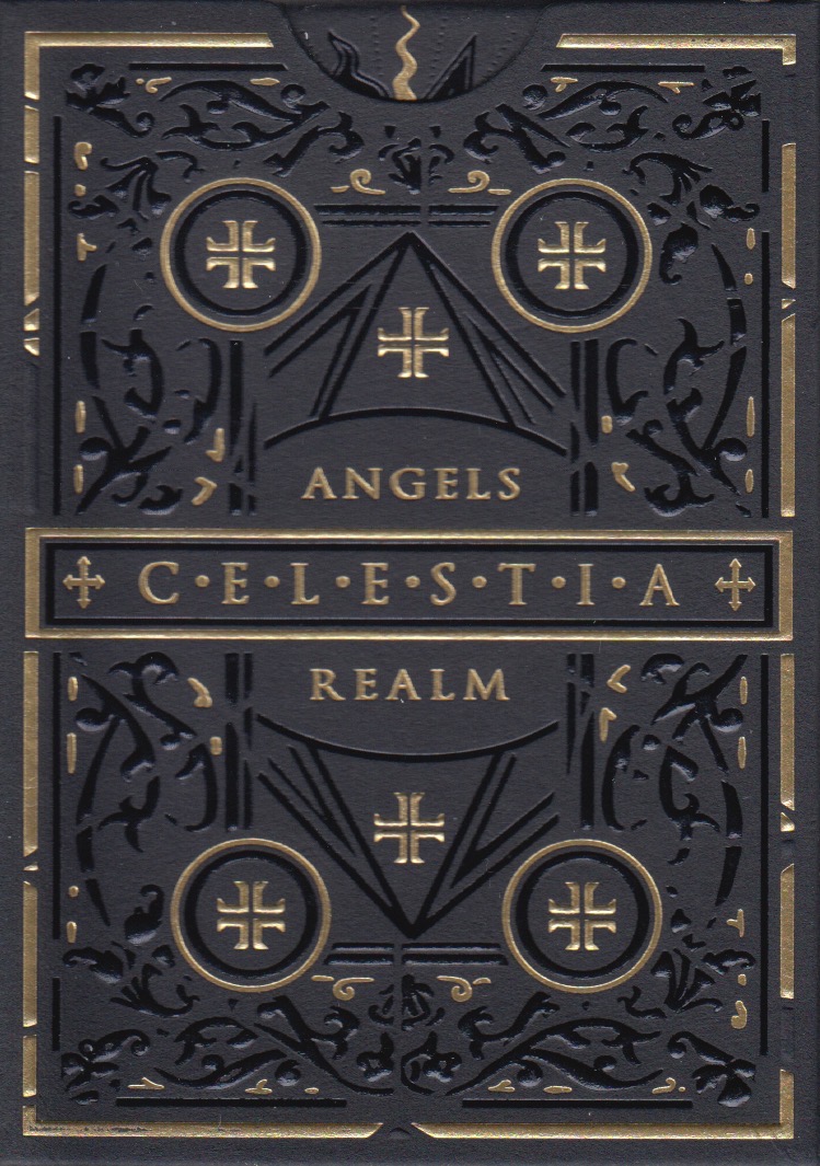 Culminus Immortalis is a redesigned and expanded release of the popular Devils versus Angels theme by artist Nicolai Aaroe from 2017. The concept has been extended with retouched art, lore depth, new tucks with exclusive stocks, card backs and much more. A unique and expanded re-imagination of Culminus, the eternal battle between good and evil, from 2017 by artist Nicolai Aaroe. Dark art playing cards inspired by eschatological literature symbolising the eternal battle between good and evil, light and darkness, saints and sinners. The Culminus Celestia edition represent the realm of arch-angels. The special black stocks feature black and goil foil and has strategic embossing that completes the artwork of the otherwordly deities. Intended imperfections in the foil art give an antique look and feel. The Celestia edition features the bright cards.