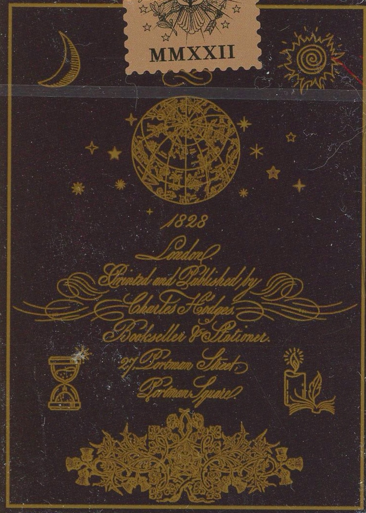 It is uncertain if time travel is physically possible, nevertheless, we welcome you to pre-Victorian, early 19th century, and the precisely restored deck of "HODGES" Astronomical NEW ROYAL PLAYING CARDS. Originally published by mysterious bookseller and stationer Charles Hodges of Portman Square, London in the year 1828.