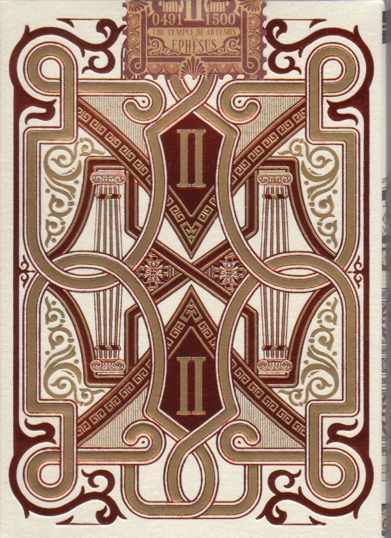 The Temple of Artemis at Ephesus, also known as the Artemision, was a monument of sheer scale and breathtaking beauty, celebrated as one of the Seven Wonders of the Ancient World. Built in the ancient Greek city of Ephesus (near modern-day Selçuk in Turkey) around the 6th century BCE, it was dedicated to Artemis, the goddess of the hunt, wilderness, and fertility. Unlike any temple before it, it was constructed almost entirely of marble and was one of the largest sanctuaries of the ancient world, adorned with magnificent sculptural columns and intricate friezes crafted by the most skilled artists of its age. It was said to be so colossal and radiant that it humbled even Alexander the Great. Though destroyed and rebuilt multiple times, its legacy endures as the ultimate symbol of sacred architecture and human devotion, a true "wonder" that drew pilgrims and travelers from across the Mediterranean. Step into a world of divine grandeur with this exquisite deck of playing cards, a tribute to the awe-inspiring Temple of Artemis. More than a deck, this is a reconstructed piece of ancient splendor, channeling the majesty of the marble columns that once reached for the heavens. We’ve captured the temple’s legendary essence in every detail. Intricate illustrations and radiant gold accents mirror the famed sculptural reliefs that adorned the sanctuary. Each card is etched with motifs inspired by the intricate ionic columns and sacred motifs, inviting you to hold a fragment of its monumental beauty in your hands. This deck is crafted for those who appreciate history, art, and unparalleled craftsmanship. It’s a collector’s item, a conversation piece, and a functional work of art. To own this deck is to own a piece of the wonder that was once so magnificent, its very existence was considered a miracle. The allure of the Seven Wonders is captured in the Die-cut Window Tuck Box, a centerpiece of this release. A window is punched out of the embossed and hot-foiled tuck box, allowing us to peer into days past, where the Temple of Ephesus takes center stage as our 55th custom face card.