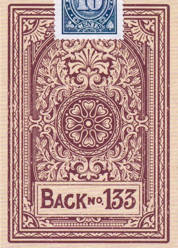 Authentic reproduction of this timeless piece of playing card art in a vintage hue of Rosewood Red, the ideal companion to the sea green deck. The artwork has been lovingly restored by hand using original source material as a reference. This deck is printed on premium tier stock and finish, housed in a tuck that boasts inside-and-out printing and a custom stamp sticker seal, restored and refined from a real tax stamp found on decks of the era.