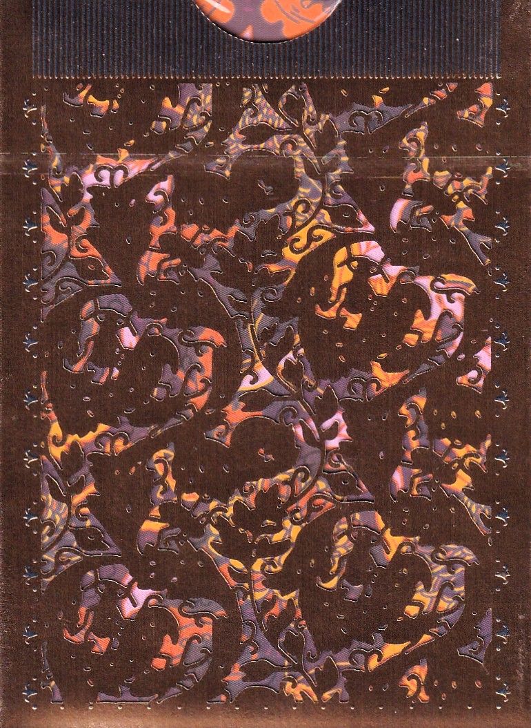 Gilded Patternwork is a luxurious, decadent gilded deck of playing cards. Months were spent hand-drawing intricate seamless patterns. Inspired by British textile designer William Morris and other traditional tapestries, mixed with Japanese dying and traditional iconography. Each pattern is themed and named after culturally significant Japanese botany and insects. The concept of the Gilded Patternwork series was inspired by 'goldwork embroidery' - using metal threads to play on light in embroidery. The style developed in Asia and was popularized (called Opus Anglicanum) in medieval England in church hangings and later in renaissance tapestries.