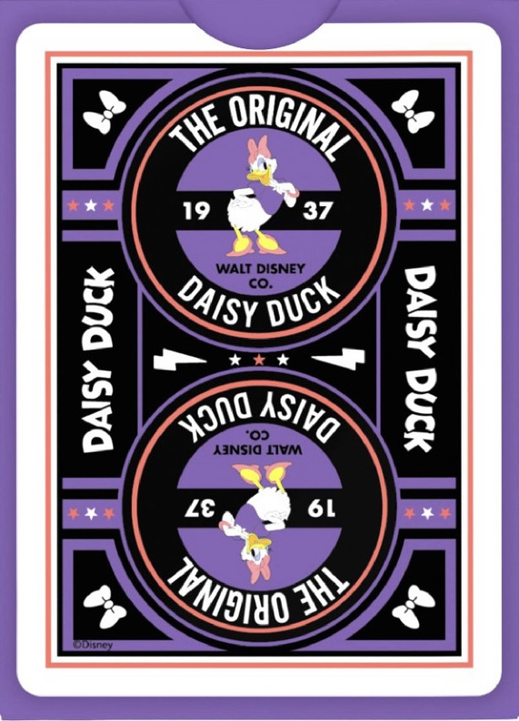 Gather your girlfriends for an enchanting game night! Featuring Daisy Duck's elegance, the lovely lavender spot varnished tuck box plays homage to her signature color. With custom-designed Daisy Duck card backs, this deck promises endless fun and sophistication for your next girl's night!